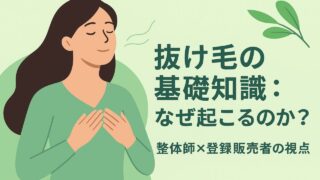 髪の基礎知識抜け毛の基礎知識:なぜ起こるのか?(整体師×登録販売者の視点) 「抜け毛が増える原因を整体師と登録販売者の視点から分かりやすく解説。頭皮環境・生活習慣・季節・年齢など一般的な要因と、今日からできる簡単なケア方法も紹介します。」髪の基礎知識