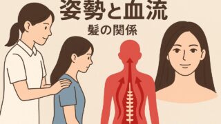 プロが教える髪と体の知識整体師が見る「姿勢と血流」と髪の関係 姿勢や首・肩の緊張が髪や頭皮にどんな影響を与えるのかを整体師の視点で解説。日常で意識しやすい姿勢のポイントも紹介します。プロが教える髪と体の知識