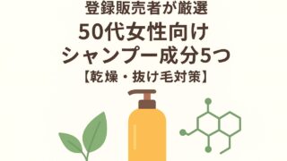 シャンプー・トリートメントの選び方登録販売者が厳選|50代女性向けシャンプー成分5つ 登録販売者が50代女性におすすめのシャンプー成分を解説。乾燥・ハリ不足・抜け毛対策に役立つポイントをわかりやすくまとめました。髪の変化が気になる方にシャンプー・トリートメントの選び方
