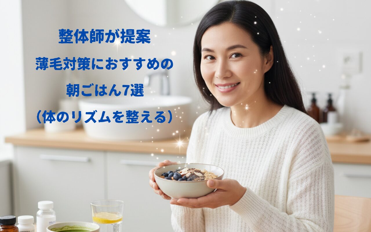 ※本記事は整体師としての視点から、日々の朝食が体のリズムや栄養バランスに与える影響に着目して「薄毛対策につながりやすい朝ごはん」を提案するものです。特定の治療効果を断定する表現は避け、一般的な健康維持の観点での情報提供に留めています。持病がある方や服薬中の方は医師・薬剤師に相談してください。