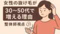 詳しくは 「女性の抜け毛が30〜50代で増える理由【整体師視点】」 を参考にしてください。